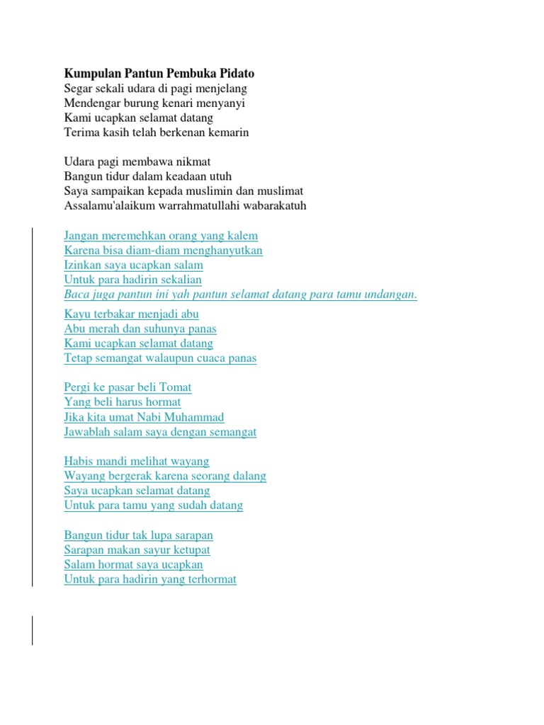 Pantun Penutup Pidato Assalamu Alaikum Wa Alaikumussalam from rumusbilangan.com Check spelling or type a new query. Maybe you would like to learn more about one of these? We did not find results for: