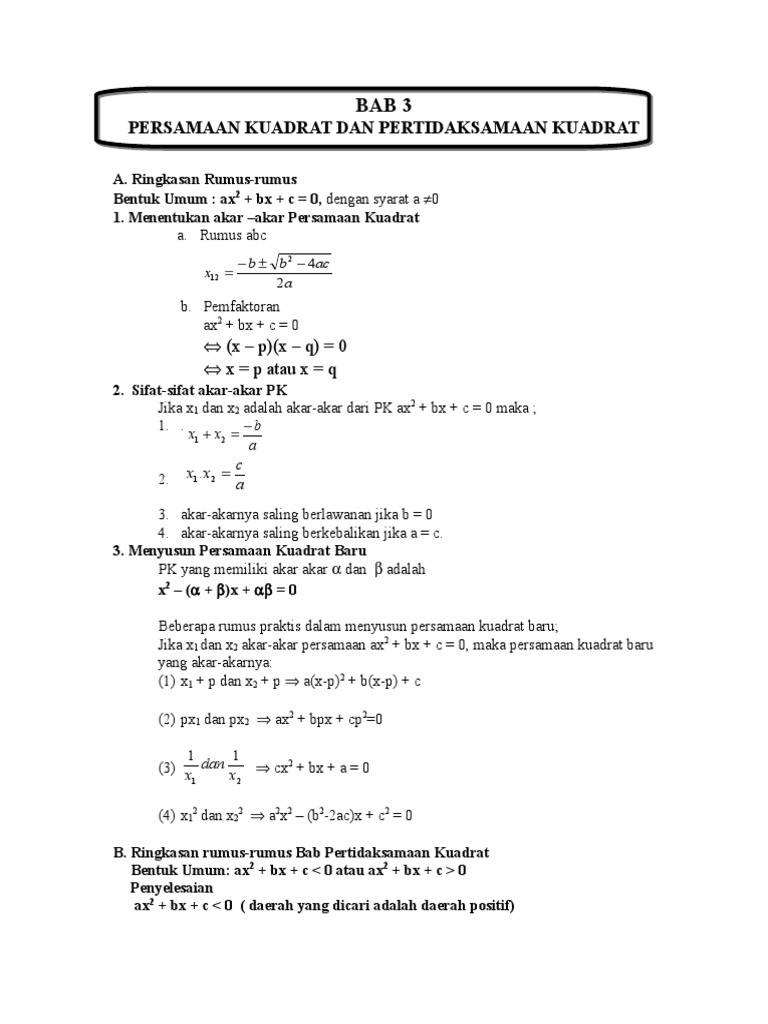 Tugas 1 Matematika from imgv2-1-f.scribdassets.com Daftar isi persamaan kuadrat pk : Untuk rumus menghitungnya adalah 0,21 x p x t. Bentuk grafik persamaan kuadrat berupa kurva lengkung yang memiliki satu titik puncak. Dengan menggunakan rumus jumlah dan hasil kali akar. Cara menghitung pemakaian solar genset. Dalam hal ini k=3, maka pk baru: Jika akar akar persamaan kuadrat yang baru adalah nx1 dan nx2 maka persamaan kuadrat baru itu dapat kita cari dengan rumus. Jika ߙ dan ߚ identik jika ߙ dan ߚ tidak identik cari invers akar pk baru, cari jumlah dan hasil kali akar pk lama ࢼ ି dan substitusi ࢼ ି ke pk lama cari jumlah dan hasil kali akar pk baru ࢻ ࢼ dan ࢻࢼ menggunakan nilai dan rumus pk baru adalah rumus pk baru adalah ܽ൫ࢼ ି ൯ ଶ ܾ൫ࢼ ି ൯ ܿ ൌ 0 ݔ ଶ െ.